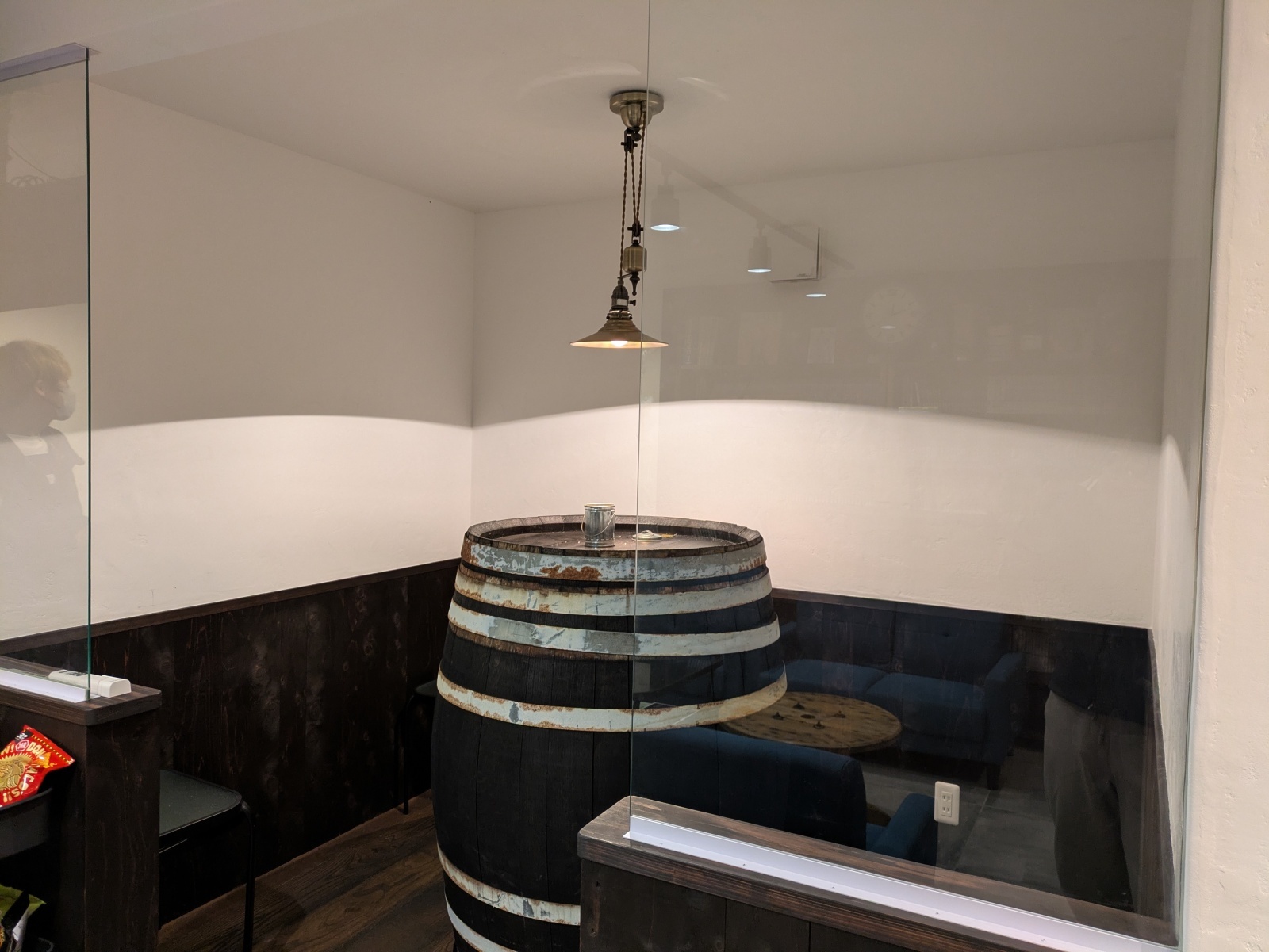 大きな樽のスペースは、喫煙&立ち飲みスペースと